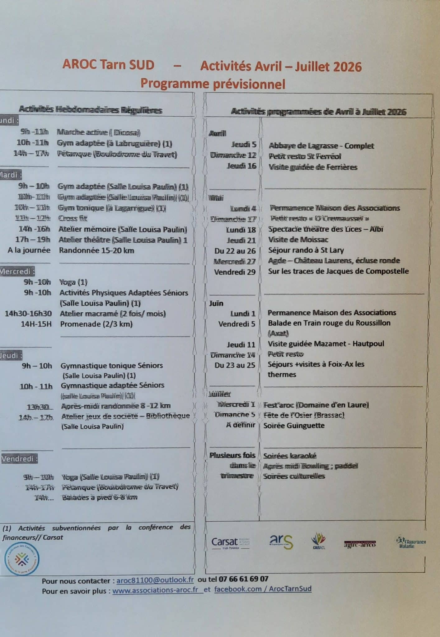 Pour plus d’informations, n’hésitez pas à nous contacter par téléphone (07 66 61 69 07), par mail (aroc81100@outlook.fr), ou à venir nous rencontrer lors de nos permanences les premiers lundi matin du mois à la Maison des Associations de Castres
